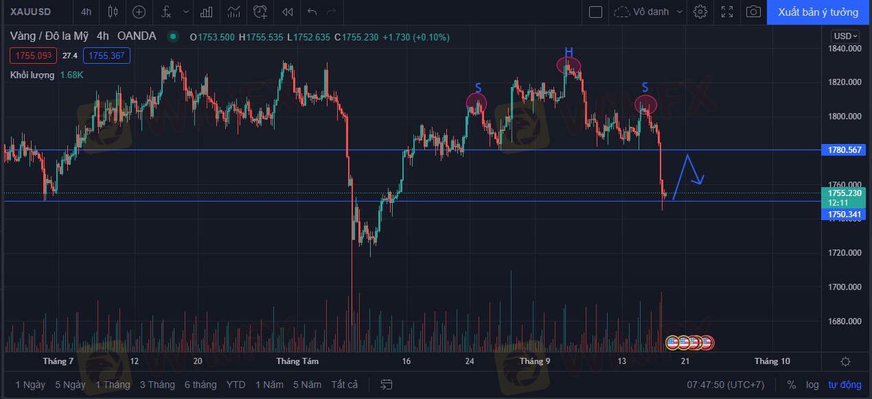 Hôm nay có thể kỳ vọng Vàng phục hồi sau pha giảm mạnh vào hôm qua. Vùng giá quanh 1750 có thể xem xét mua phục hồi.