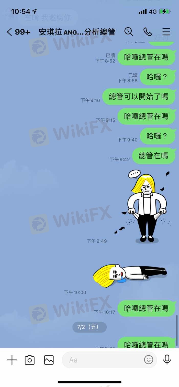 一开始投一千进去赚了五千後,把本金一千提领出来可以领,之後剩的钱就继续和群组带单慢慢赚,直到我想将部分钱提领时,客服就是不回应也不处理,群组内的分析总管也是,当初说什麽我中了他们程式部门六月红利名额,可以用较少的资金投资(他们活动正常都要10万),所以当我得知这个消息时我就很兴奋,心想我终於可以赚多一点钱了,所以我投入了一万之後,总管也说会帮我安排,等了好几天都不见总管回覆,我又在大厅群组回应此事,就询问其他学员有没有其他人联系到总管的,但其他人都说有,我就很纳闷了,是我投入了钱就不想甩我,结果没多久总管就回我了,说抱歉抱歉最近太忙讯息太多,後来才开始帮我安排带单,但她说一对一带单必须退出原本的大厅群组,结果跟我约好时间准备要开始操作了,人就不见踪影,等了好几天还是没回应,我就彻底放弃了,所以提醒正想投资的你们,不要盲目的投资,确认好这个投资是否安全再下决定,可以多询问朋友亲人或是防诈骗专线165。