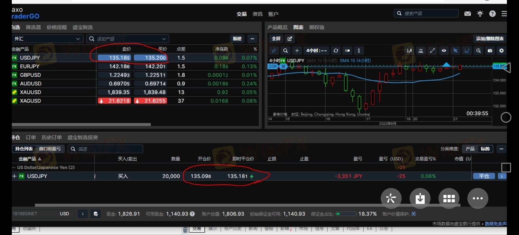 我做USDJPY买入135.098,0.2手,市场到135.2,居然亏损25美元,根本无法操作,等下跌到135.07左右居然只亏损3美元,平仓