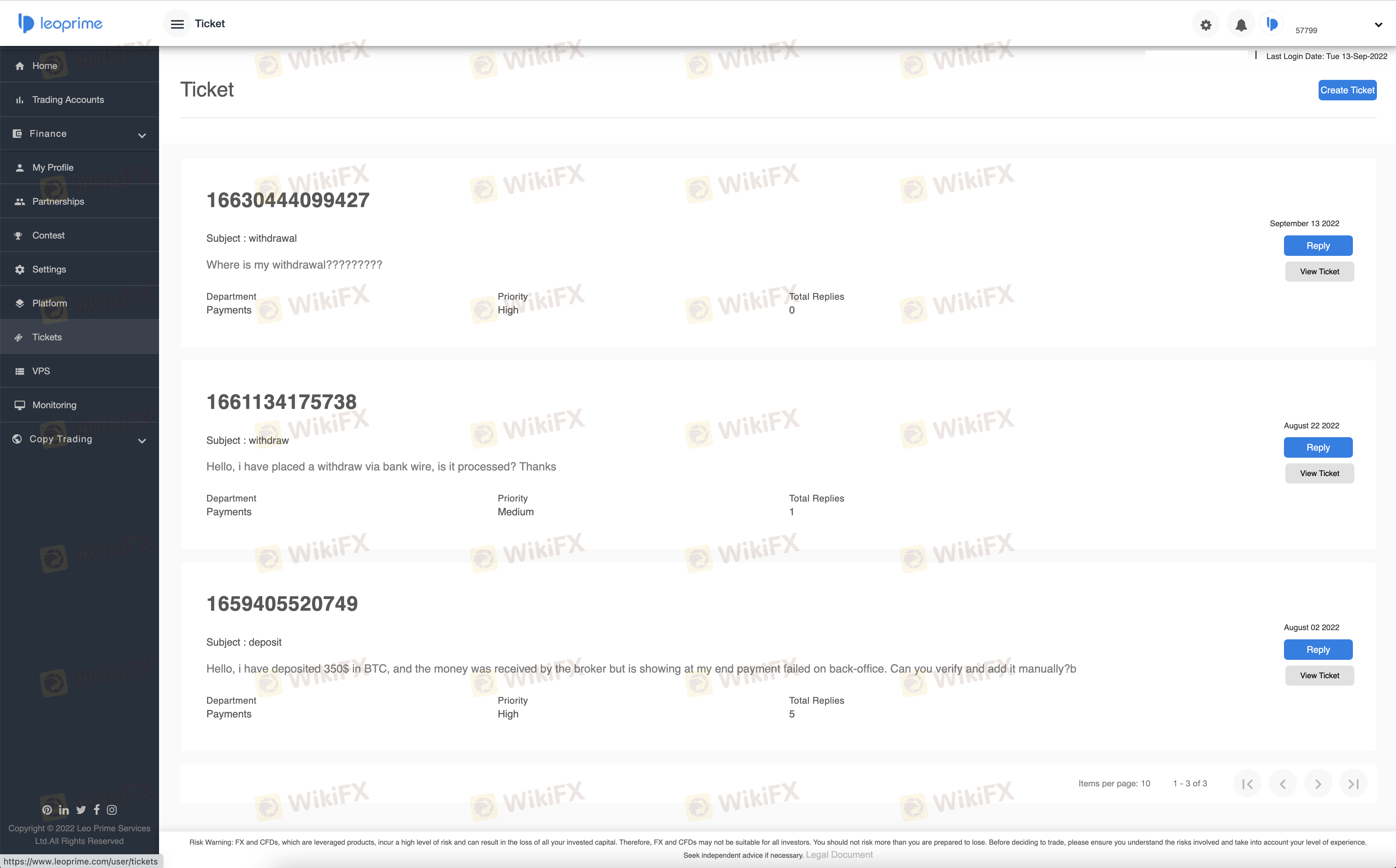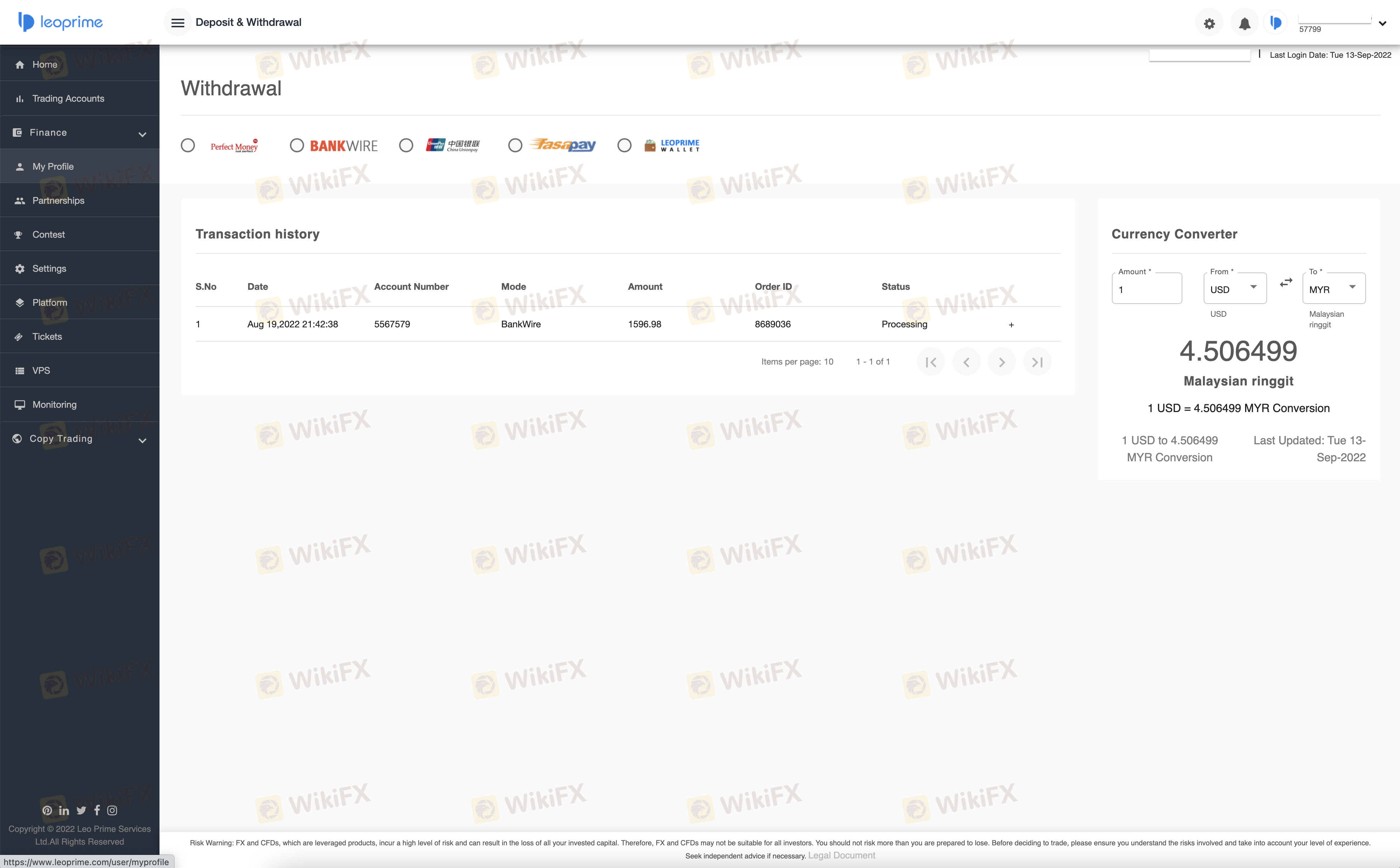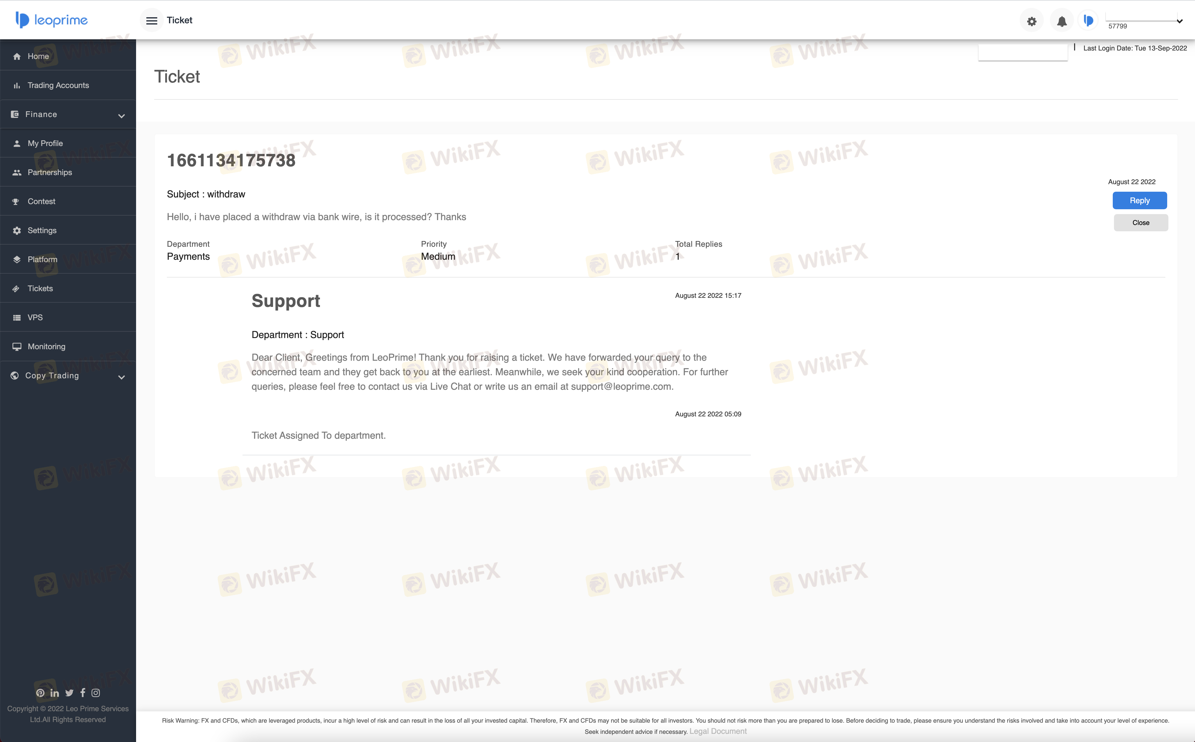 我已要求LeoPrime出金一个月了,但我没有收到钱,也没有收到他们的回复。