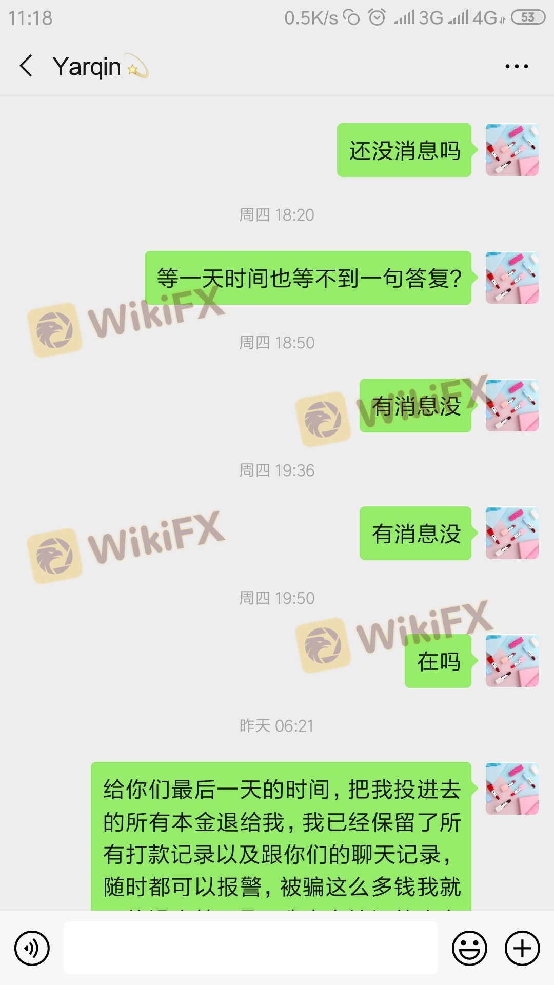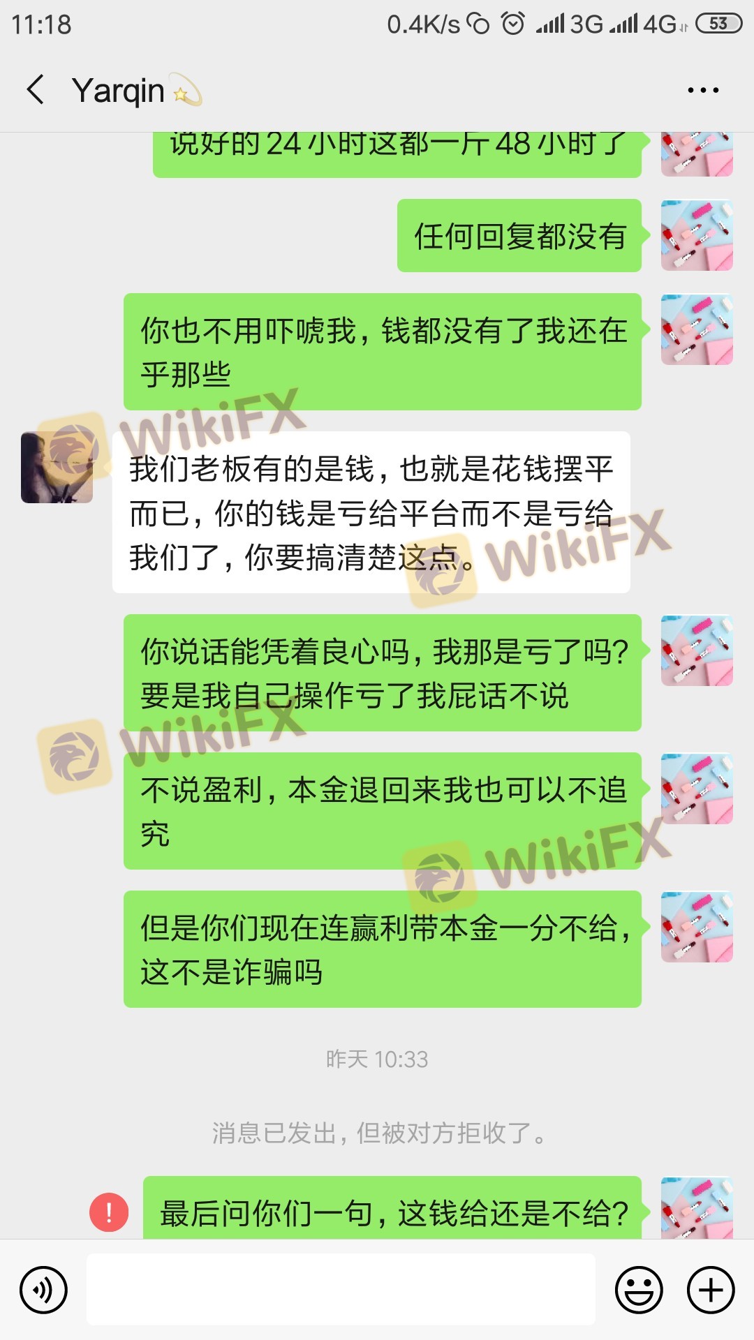 先是诱惑你入金,等你入金盈利后就没法提现了,然后变着花样让交个人所得税,然后又说提现银行卡号错误让交保证金,交完所有的说2-24小时到账,然后就是一直没有到账,平台登录不上,客服联系不上,联系介绍人也是让等,无限期等,最后听说我要报警了终于漏出丑陋嘴脸了,说他们不怕报警老板有的是钱可以拿钱摆平,直接把我拉黑!!!!!骗钱的就是下图微信中的女人!!!!