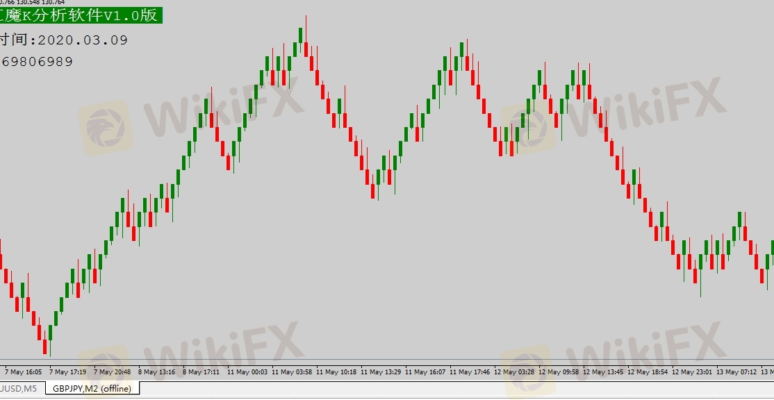 这是魔k,代替传统K线,不以时间作为K线走势。以货币对当前,走势能量体现形态再配合趋势线,日内短线,周单,也可根据自己喜好。搭配设计自己的交易系统。本系统有数十个,稳定指标组成精准信号不漂移,不移动,可配合马丁策略,联合使用。