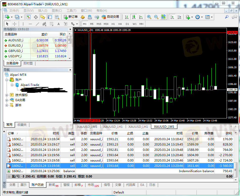 2020年3月24日北京時間19:20分 ,平臺時間2020年3月24日 13.20, 艾福瑞平臺黃金價格出現了完全離譜的價格 ,參照了國際上的價格也沒 1626 這個價格 應該是故意后臺拉價格 導致本人賬戶 直接爆倉 聯系他們客服處理非常消極 而且很慢 直接導致爆倉的是最后三單 , 已經附上截圖 平臺給予的回復完全在推卸責任 非常異常氣氛!!!!! 希廣大投資者千萬要謹慎 你們可以查下那天到底有沒這個價格