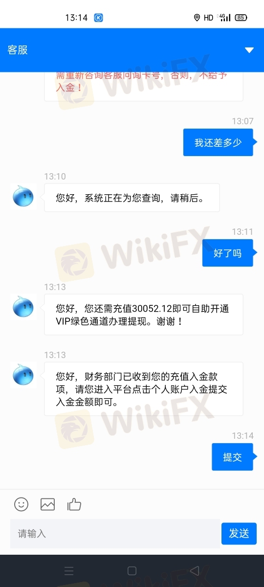 解凍金交了,還要升級為VIP,客服還都是機器人回復。一直不能提現,懷疑是騙子