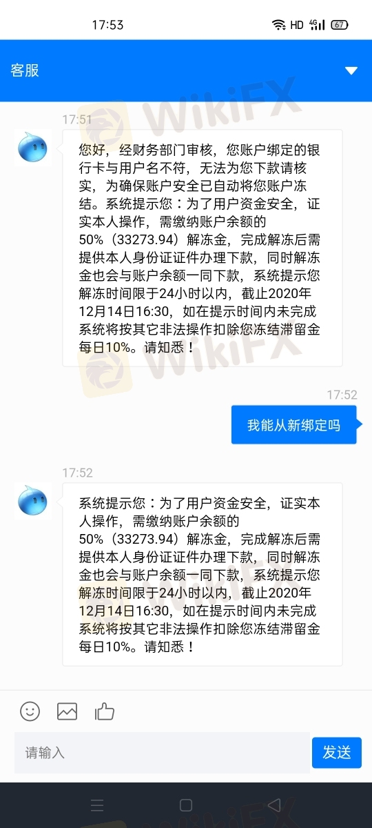 不給轉賬出金。