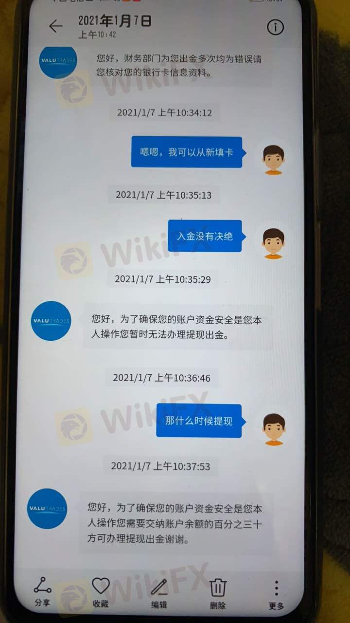 我1月7號想出金,然后告訴我提現系統正在維護明天辦理提現,然后我第二天10點以后提現,審核沒有通過,后來告訴我無法提現出金。我就什么時候可以提現,然后告訴我繳納賬戶余額的百分三十才可以提現,我入金的錢都是我借的錢。