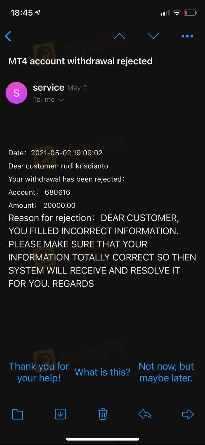My withdraw always get rejected.. tried to contact their customer service via whats app n email but no respond Need help