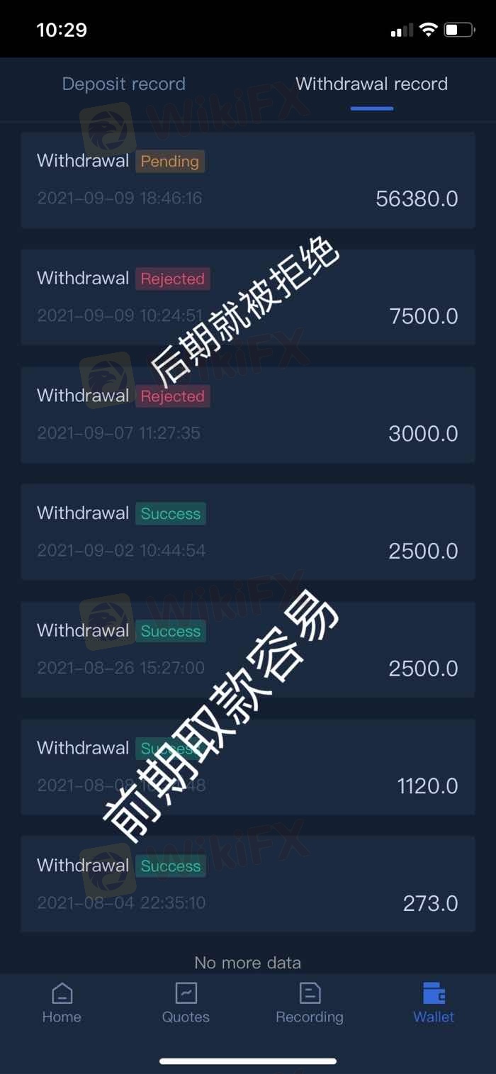 不給取款,沒交個人稅就凍結賬戶資金。入款沒記錄。前期取款容易,后期三天都不回你。