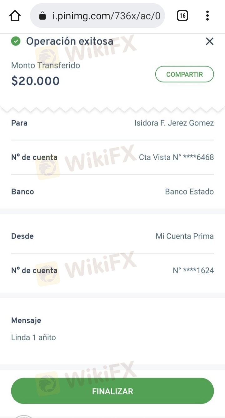 我對我的帳戶進行了多次捕獲,以便他們觀察發生了什麼,不幸的是這些人讓我存入了 20,000 比索,之後服務下降了非常糟糕,事實是,這些人的服務很差