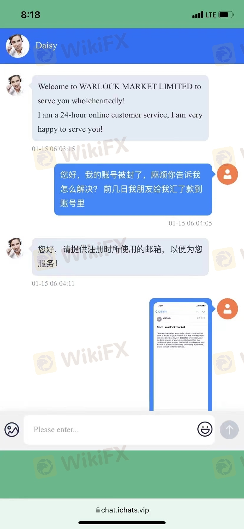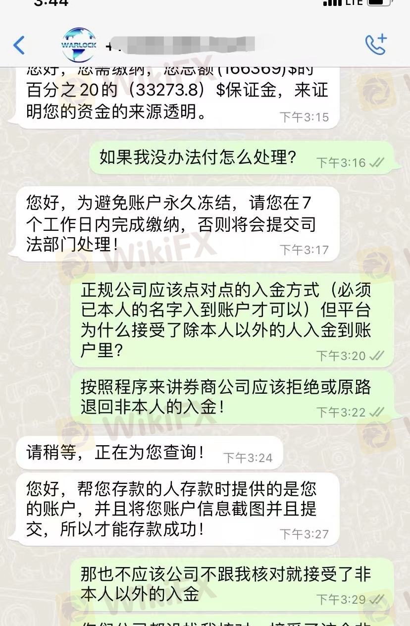 朋友以投資為名,誘使我投金warlock market。2021年1月13日,無故凍結我賬號,要求該平臺解封,客服回復要求支付20%的保證金,但平臺無規定。14號要求出金,給以解釋,該平臺拒絕出金,我被客服直接拉黑。