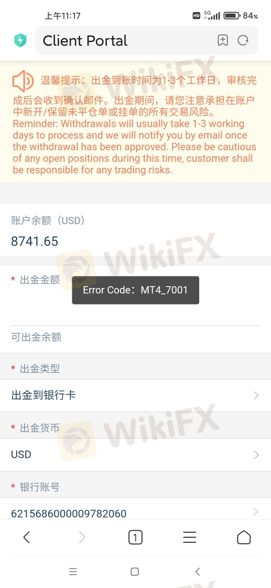 從2021年10月多次申請無法出金,后來直接顯示無效,錯誤,客服直接拒接任何聯系。