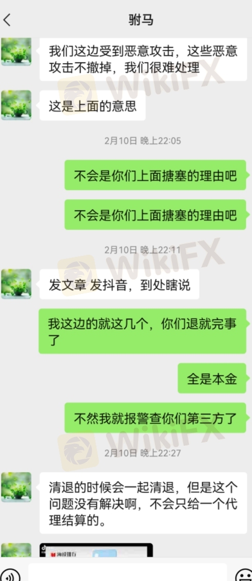 MT4賬戶: 90093580 本金4000USD折合人民幣25736 1月底申請出金,后臺顯示已經審核,但是資金一直沒有到賬,平臺人員拉黑微信,微信不回復,電話不回復,發郵件不回復,出金的時候說年底了出金通道放假,年后說要調查賬戶,我賬戶還是虧損的還調查個毛[3f]出的也都是本金,然后多次催促出金依然沒有到賬,2月24號說平臺增加新股東,要在青島開辦事處,需要重新整理財務,需要5一10天才給出金,直到3月3號不回復信息,3月9號拉黑微信,電話不回復,給平臺發送郵件也不回復,是不是平臺已經跑路.了[3f]還是平臺老板被抓了[3f]目前知道平臺北京辦事處地址,在北京廈門青島活動