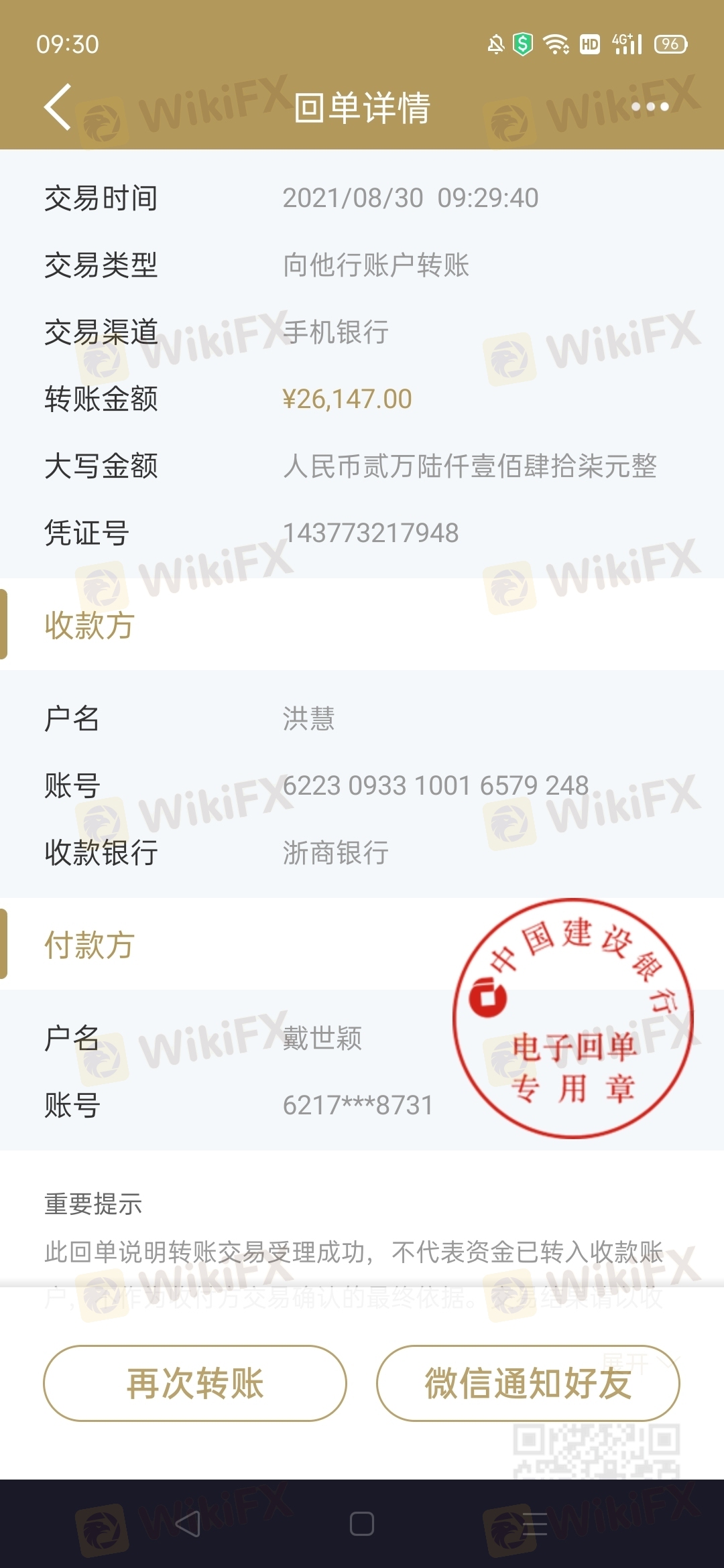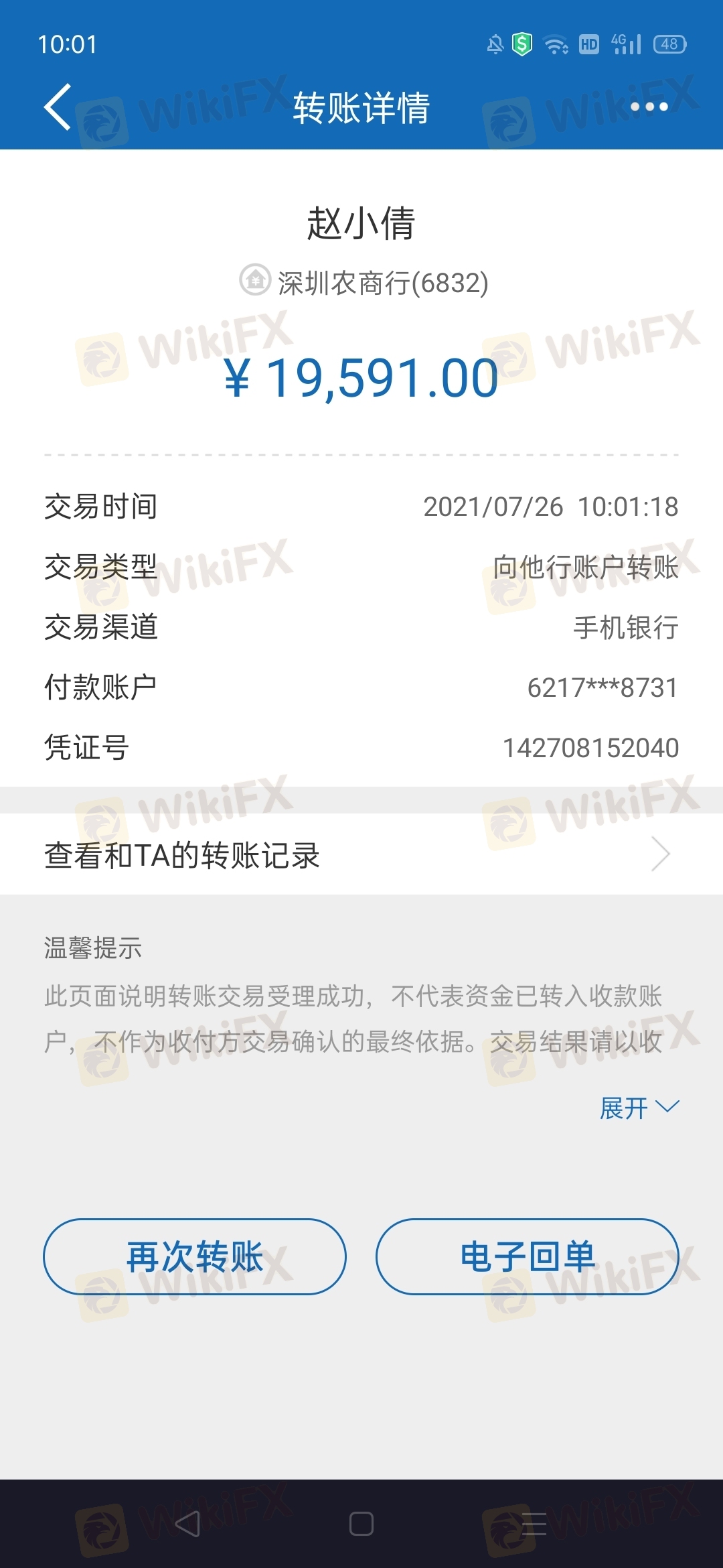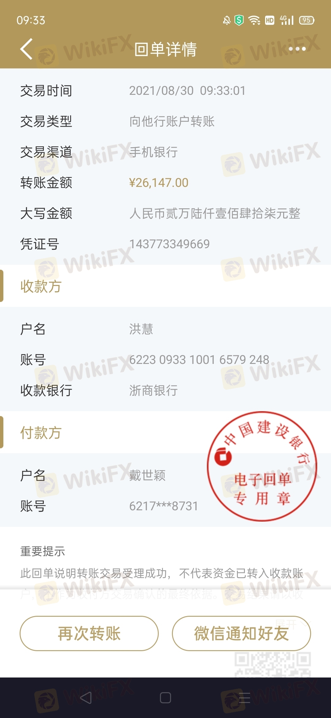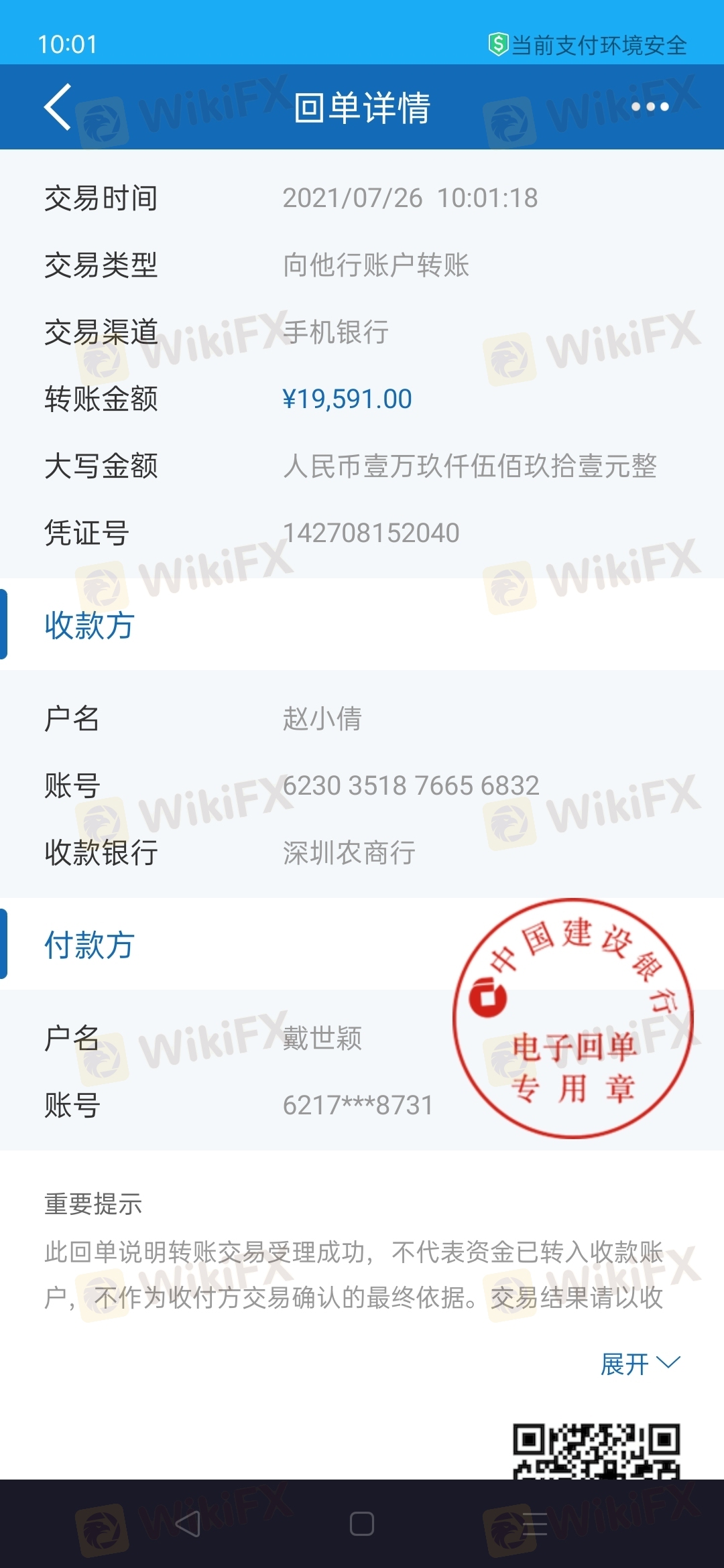 ACY稀萬國際領導們 我是戴世穎 把你們告到公安機關的不是我告的 是邱虎告的你們 公安機關立案對你們調查 那是邱虎告的你們 你們指示我入金給我盈利做為補償 導致給我吧入金的二十萬人民還全部虧損 只通過微信轉給我一萬七千塊錢 剩下的18萬人民還持久不給我 如果你還不給我 等邱虎案件結束我 還會將你們狀告到公安機關 把你們全部抓起來!我希望你們抓緊吧剩下的18萬人民幣還給我 我就當什么事都沒發生!如果你們還是視而不見!那你們就好好等著吧!