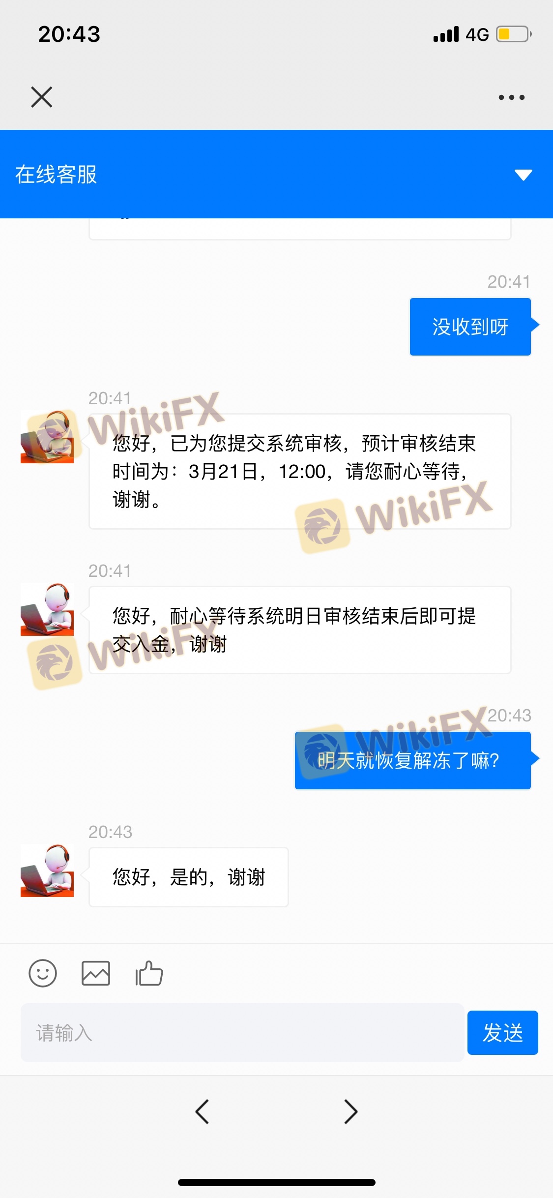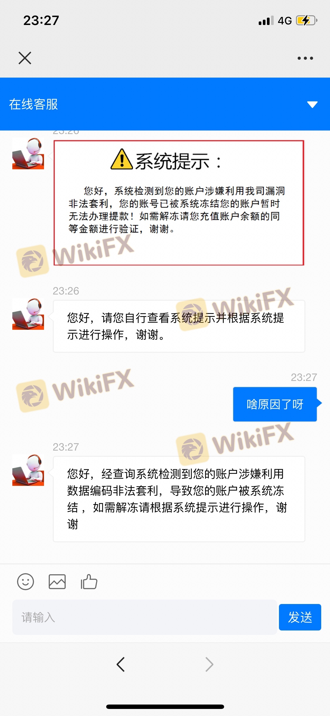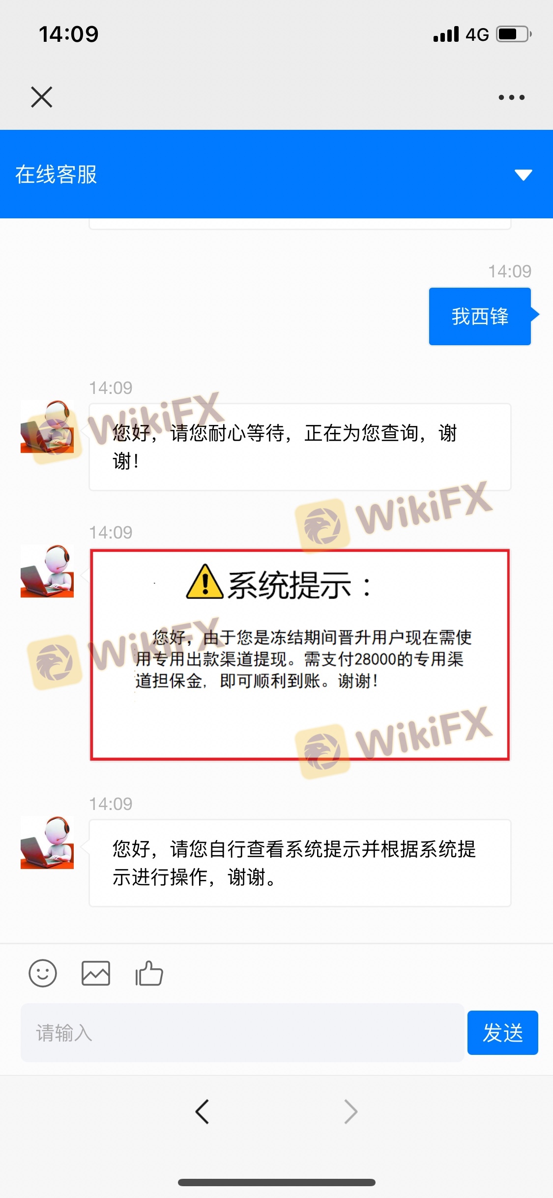 我一次提現說是賬戶凍結,要充值相對的金額才能出金,我沖之后有說賬戶凍結,沒有流水,無法出金,讓我升級成VIP客戶才能出金,要充值一萬八,我沖之后又說是賬戶解凍要叫28888的保證金才能出金,這樣還是沒出金