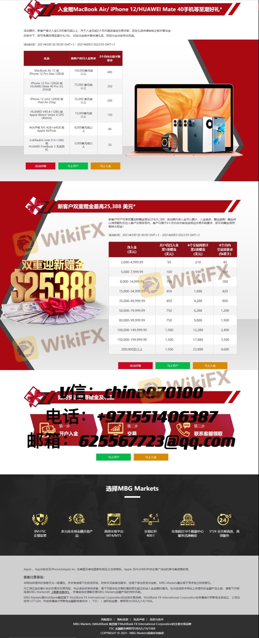 MBG推出赠金等一些列活动回馈客户 入金2000即可获得268美金赠金 最高25000美金赠金 还有苹果电脑手机iPad等电子产品轻松得