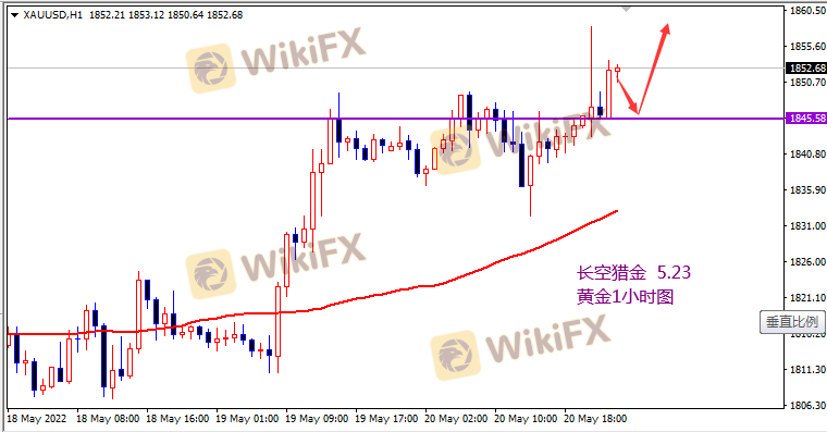 行情分析长空猎金:黄金连续反弹升高,日内1845多