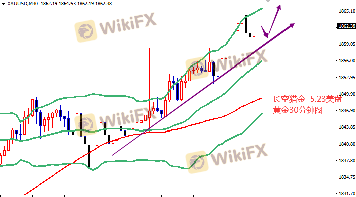 行情分析长空猎金:5.23黄金延续上涨,美盘1860可多