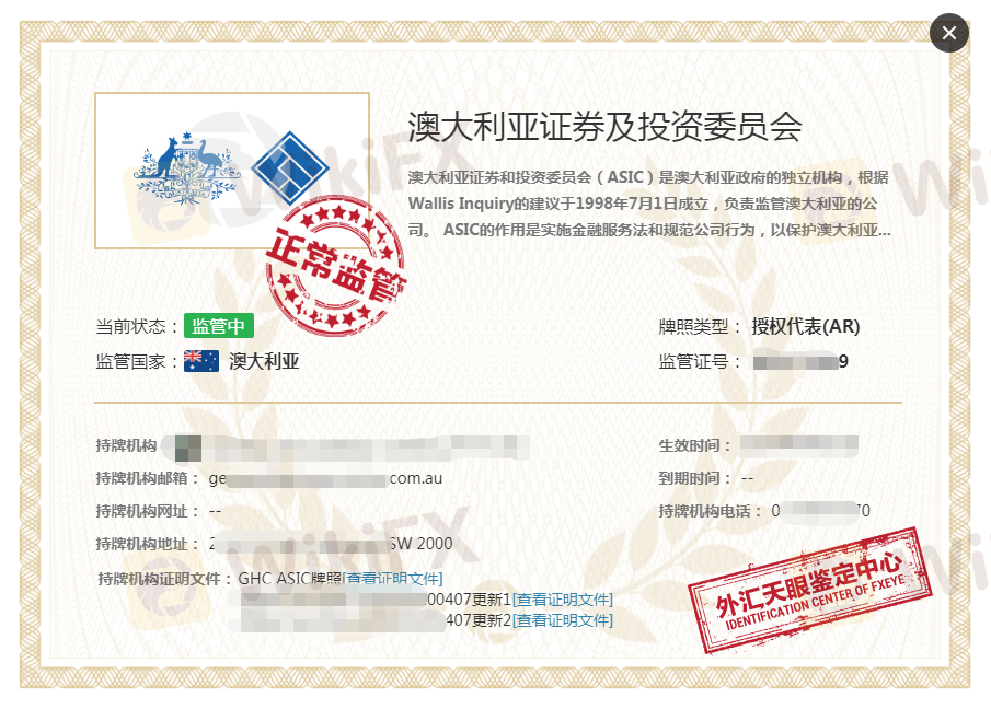 牌照介绍: ASIC是澳大利亚金融服务和市场的法定监管机构,澳大利亚证券和投资委员会于2001年根据澳大利亚《证券和投资委员会法》成立。该机构依法独立对公司、投资行为、金融产品和服务行使监管职能。 澳洲ASIC牌照是顶级的外汇牌照,想要申请对平台的实力有很大要求,可以退而求其次选择ASIC的AR牌照。AR,即Appointed Representative,一般可以翻译成委任代表或授权代表(以下全文将简称AR)。
