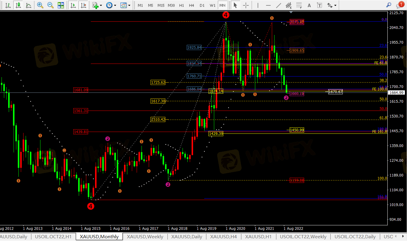 ① 首次跌破自2020年以来下跌的1677-1680低点出现惯性下跌;